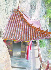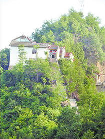 最近,一个朋友告诉我,大仙洞现在已经是人气很旺的一个旅游景点,山上通电了,楼房 建起来了,也不用到山脚背水吃了。6月18日,我起了个大早,准备重游大仙洞。从吃水沟口到山脚下是一条架子车路,坡度比较大,摩托车很费劲地行走了二十 多分钟。我们一鼓作气爬上山顶,走进寺门时,时间还没到7点,我们看到一位60多岁道姑装束的大婶手持笤帚在打扫院子,整个院子显得安静、肃穆而又祥和。 大家好像有默契一样,都没有多说话,仔细游览了一遍后,我们悄然走出大仙洞,静静坐在寺门外不远处的山梁上,体会一种类似坐禅的心境。
