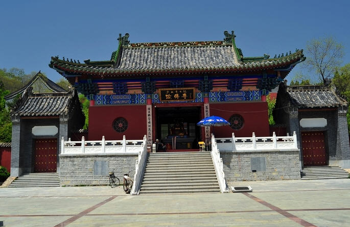 铁佛寺坐落在邳州九龙山(原名艾山)风景区。铁佛寺因供奉一尊16.8米高的大铁佛而得名。原寺始建于元代,历经七百年沧桑,曾于明朝万历年间与清朝康熙年间两度重修,后毁于文革。2006年,开始建设,共投资1.4亿元、历经三年多时间建成。共有山门殿、天王殿、大雄宝殿、千佛殿、铁佛殿五层大殿,以及观音殿、地藏殿和居士林、素斋堂、禅院等附属建筑。依九龙山而建、气势宏伟,是目前江苏省规模较大的寺庙。