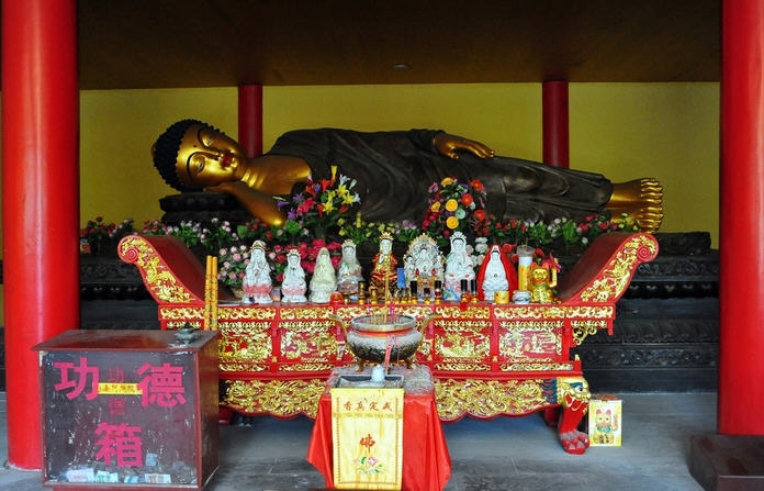新复建的玉佛殿敬放四川绵阳罗汉寺方丈果清大和尚赠送缅甸玉卧佛(佛祖),长约4