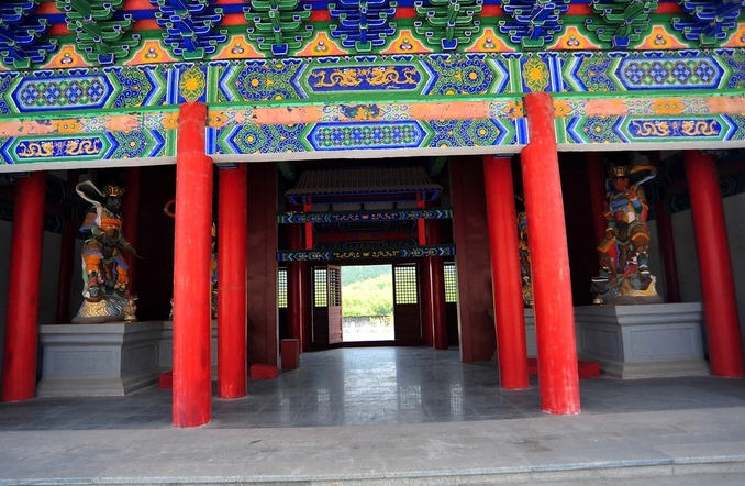 九龙佛塔开光时,扳动暗处机关,佛塔中九道佛门便即打开,九位菩萨缓缓现出金身,周边九条巨龙齐齐向塔顶佛祖喷水灌浴,景色奇妙,蔚为壮观。