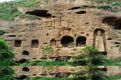 法镜寺石创建年代待考,据窟形与造像特点看,初定为北魏中期年间建造,分为南北崖两单元,现仅存三十一窟,有造像十三尊。其中南崖十五窟,北崖十六窟。七号窟最大,高、宽各○.八米,深○.五米。窟形有长方平顶形,方楣四面坡形,穹窿形,中心塔柱形窟是早期自印度传入我国的一种,敦煌、云岗石窟中亦有。