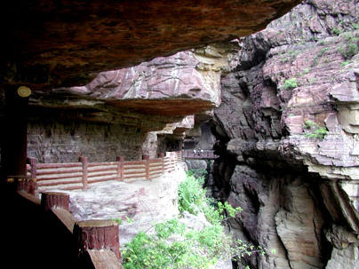 雄山寺,据碑石记载,寺创建于宋,明成化年间复修。清康熙年间维修后改名“镇远寺”,后屡次修葺,复称“雄山寺”。 在寺的正门上方有“红石峡”3字。寺内殿宇均依悬崖凿洞而建成。其中有“天门”、“地门”各一,皆为隧道,另有“大雄殿”、“观音阁”、“园觉殿”、“睡 佛殿”等窟。从风格上看,多为明代石窟。从“天门”登峡顶,中间有一阁,名“翠然间”。登临亭阁,向下俯视,绿树清水,宛然如画。出寺而下,过地门须匍匐 而行,其中雕刻颇多,妙趣横生。出地门至峡底,榆溪河岸,黄沙如金,柳树成荫,游人席地而坐,环顾美丽的景色,令人心旷神怡,惬意无比。