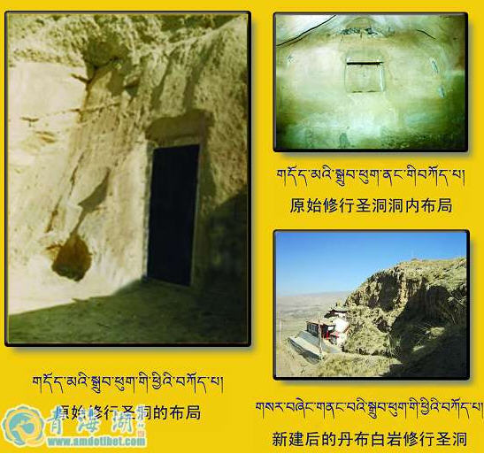 风雨春秋,屡经沧桑。十六世纪,三世达赖索南嘉措最初在这里开光加持时,丹布白岩有一个主洞和十几个左右支洞。过去,该地带为吐蕃王朝、吐谷浑、蒙古等民族相互争霸作战的阵地,几度风尘,几度兵乱,屡遭事变的波澜,给后人只留下一个主洞和一个支洞,其余支洞均化为历史的尘埃中。随着党的春风吹遍神州大地,高原花丛争鲜斗艳,勤劳智慧的藏族人民开始继承和保护古迹文化,重新收获佛教文明的果实。周围信教群众封山造林,修缮青砖绿瓦,保护自然生态,从而清泉喷涌自如,修禅静坐的僧侣纷至沓来,礼顶转洞的虔诚群众接连不断,重现安详自在的丹布白岩修行洞的原来面貌。