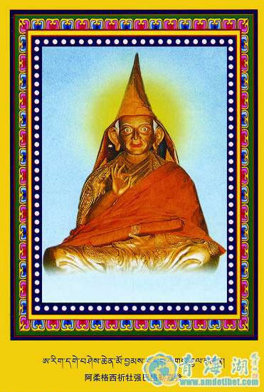 到了十八世纪,藏传佛教格鲁派继承者、西藏万名僧侣中的独树一帜、倍受广大僧人和信教群众推崇的安多籍一代宗师阿柔格西强巴格勤嘉参慕名寻求丹布白岩修行洞。千里迢迢,寻寻觅觅,追索历代达赖的足迹,夜以继日,从青海湖翻越隆宝赛乾山,经直合龙姆山(即一尊护法龙女)边走边歇,终究找到了阿柔格西梦寐以求的理想胜景——丹布白岩修行洞。从直合龙姆山到洞山脚下,见许多清泉,据民间传说,阿柔格西每歇脚处就喷出了一泓清泉,是直合龙姆专门敬赐阿柔格西解渴而引出,直到洞山脚下就不见其他泉水的流淌,非常奇特,现在还可以目睹。阿柔格西独自一人在该洞中一心修行数年,修成了至高瑜迦,达到了最高悟性境界。以阿柔格西的执著寻求和苦心孤诣,使丹布白岩修行洞灵慧之气四溢而更加彰显其名誉,纷纷而至的僧俗络绎不绝。古往今来,在佛教界上层人士都曾亲临其境,开光礼拜。故老百姓中传颂这样一句话:“去过安多磕拜丹布修行洞,就等于到过西藏膜拜布达拉宫”。