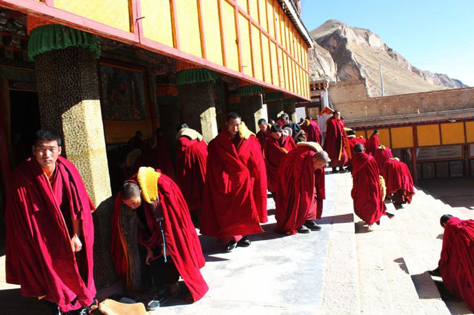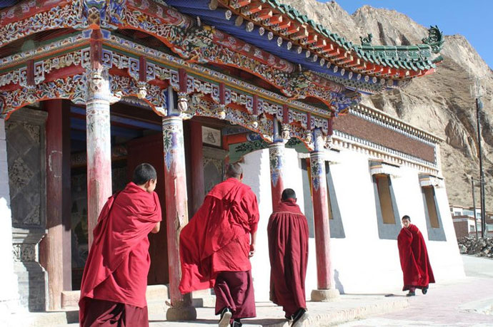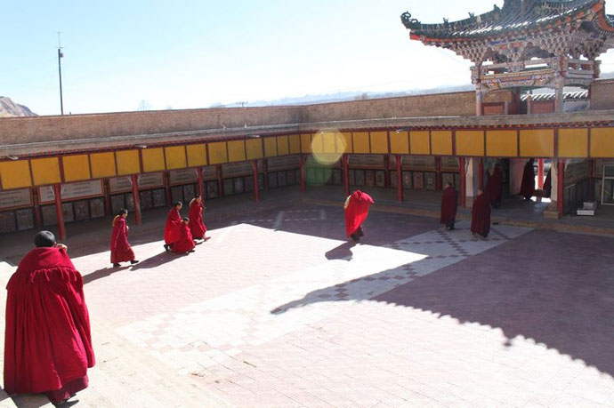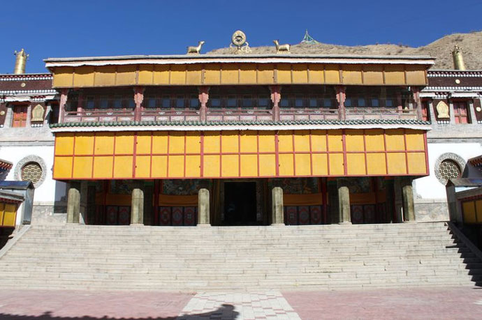 藏语称“鲁仓讲修兴善洲”,又因系尼尔仓活佛所建寺院,亦称“尼尔讲修兴善洲”。位于县治茫拉西北2公里的哈买日山根,属森多乡。由尼尔四世罗桑却吉尼玛(1850一 1909)建于清光绪十五年(1889)。尼尔仓本为今贵德县常牧乡尼尔寺活佛,一世罗桑南喀,二世阿旺丹增尼玛,建贵德尼尔寺,三世罗桑丹贝坚赞。(1802一1849)。从第三世起,又派生出两个尼尔仓系统,一为1851年出生于贵德日安的丹巴热吉,仍住尼尔寺,一为鲁仓寺的创建者罗桑却吉尼玛。罗桑却吉尼玛,贵南鲁仓人,由拉加寺的香萨活佛认定为尼尔罗桑丹贝坚赞的转世,并由其兄拉加寺的鲁什则仓活佛带往拉加寺学经,曾任该寺法台,39岁时建鲁仓寺,不久建一座有4根通天柱的25间经堂,从拉加寺请来贤巴桑布作讲经师,仿拉加寺建立各种显密修供仪轨。五世罗桑克珠(1910一1958)仍由香萨认定,曾扩建经堂,整顿寺规,组建显宗学院,开设两个学经班级,寺僧从原来的80余人发展到300人。同时讲修密续四部,建有胜乐、大威德、普明、不动金刚四彩粉坛场的修供仪轨,另有发心供养、正月祈愿法会、四、九月的斋戒会等。学习经 文采用郭莽扎仓教程,并丧有“资主乎”考试制度。该寺1953 年有僧208人(内活佛3人),牲畜11649头(只),耕地6750 亩。1958年前,共有僧人370余人(一云327人,其中大小活佛13人(内有来自其他寺院的活佛6人),文保、僧官各1 人,管家18人,干巴60人,完德100多人。全寺有房屋955 间,其中称作“恰当玛”的大经堂、“拉康赛当玛”的大殿及 “鲁什则拉康”殿各1座,为该寺主体建筑,计142间。寺院经济实力雄厚,有骡马3l5匹,牛989头,芋10348只,土地 7936亩。活佛中,地位较高的有尼尔、鲁什则、加毛赤干(即贵德县加毛寺活佛)、却吉等四大仓,各下辖有寺僧80余人。其中尼尔和鲁什则轮流执掌寺院主要领导权。另有地干(原同德地干寺活佛)、日安(原住贵德卷木寺)、然固(原贵德梅隆寺活佛)、格西(塔尔寺格西,本名旦巴热吉)、吉仓、格干(原塔秀寺活佛)、霍尔当(原拉加寺活佛)、索玛等。寺院受拉加寺管辖,寺主下设僧官、管家、格西(讲经师)、引经师、恰里哇(僧官助理)、果尼等僧职。原上下鲁仓为其主要香火部落,分布在令贵南森多乡、塔秀乡和茫拉乡的塔哇、格哇等村。此外,今泽库县的王加乡亦有群众信仰。该寺1958 年后关闭,1962年开放,有僧26人。“文革”期间拆毁,1981年重新批准开放,现重建有经堂15间,僧舍87间,有僧84人(内活佛1人,完德8人)。活佛却吉·加央罗桑旦达尔,为第二世却吉(前世藏宗,原石藏寺活佛),贵南塔秀人,1919年生,曾学经于鲁仓寺和甘南拉卜楞寺,现任寺管会主任,是目前寺内最有影响的人物。原该寺吉仓活佛班玛多杰,现任贵南 县政协副主席。