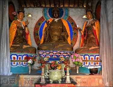 弥陀殿中弥勒菩萨的手印:一般寺院里的阿弥陀佛左手托着莲台;右手则空着伸出是为了表示接引念佛人往生西方。二天门寺的阿弥陀佛菩萨 打的是接引手印 ,正在讲经说法,让众生脱离苦恼,到西方极乐世界去。