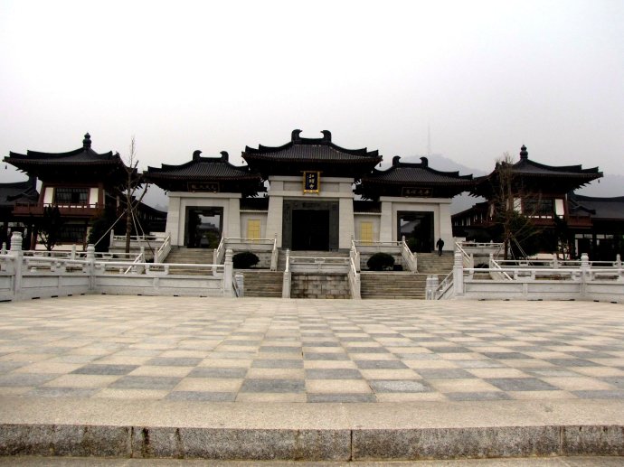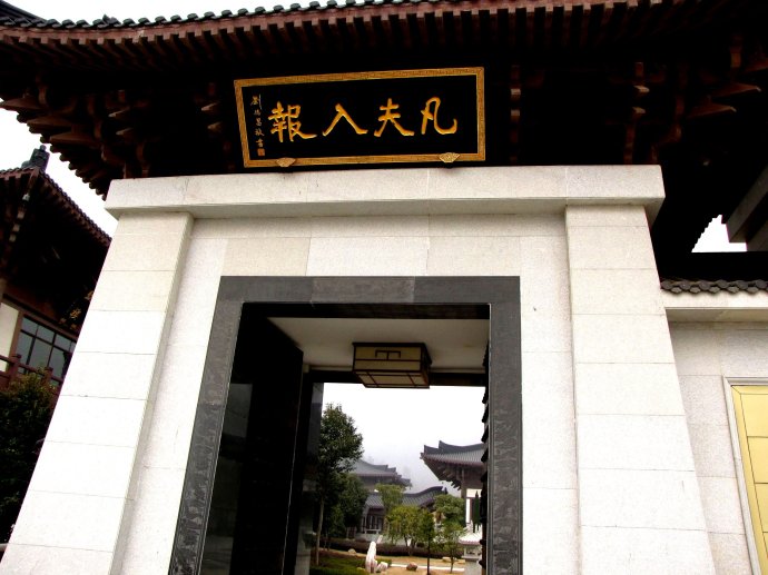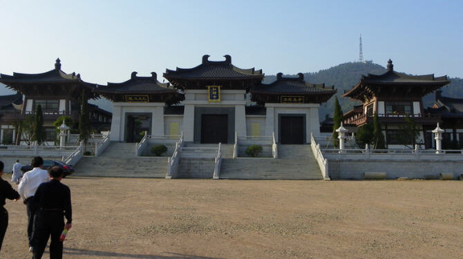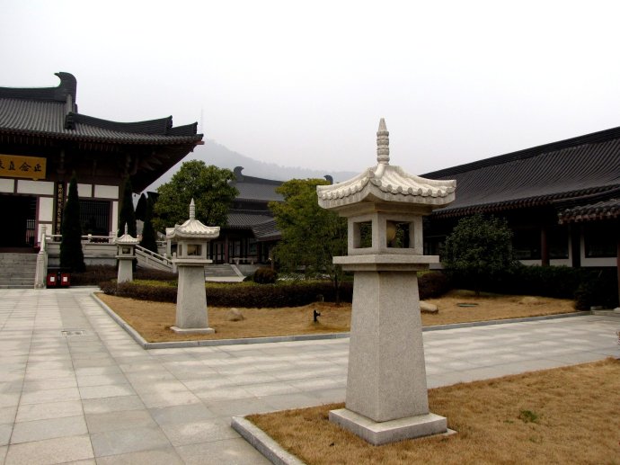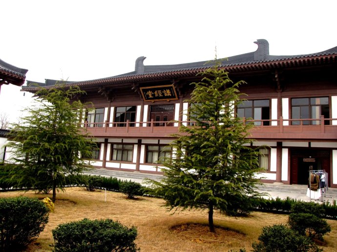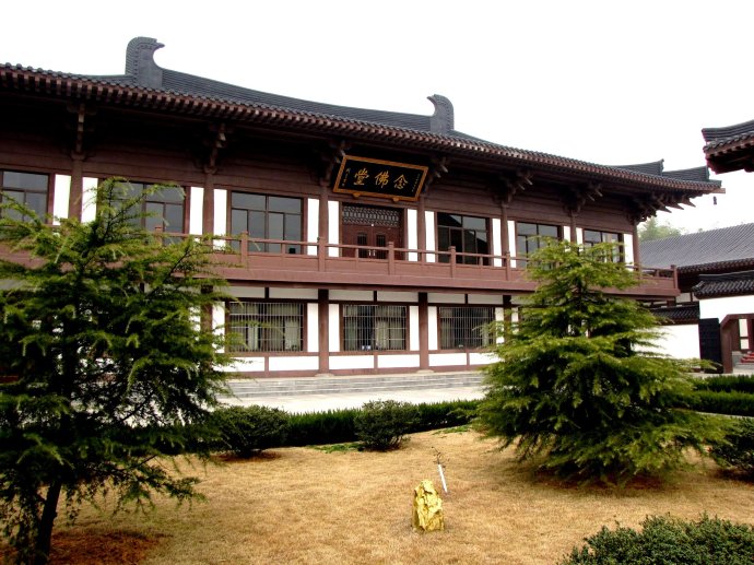 念佛堂、摄取堂、讲经堂、藏经楼、佛教音像图书馆、弘法楼、大斋堂、寮房、朝山会馆、芬陀利安养院。取仿唐建筑风格,中轴对称结构,前后四进。