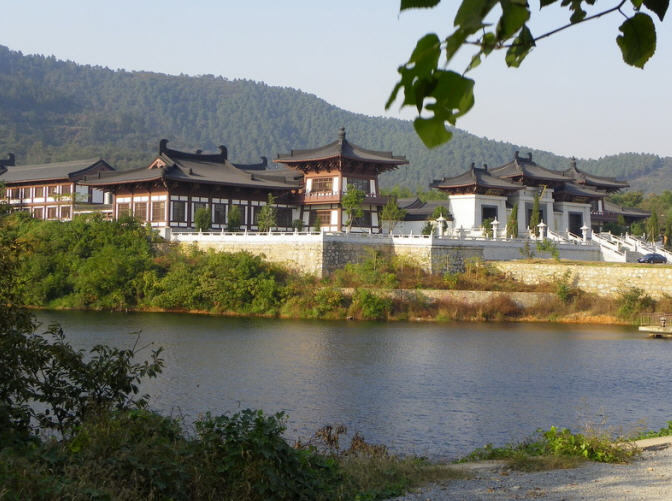 总分五大区:寺院主体建筑、寺前广场、双塔、半岛文化园区、周边生态园区。
