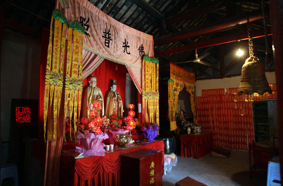 这座寺庙据说建于元代,据今应有600年以上的历史,原名四面佛寺,后于民国12年重修。四面佛即大梵天王,梵天的梵文音译是婆罗贺摩,亦称大梵天。据说,他是色界初禅天之王,称大梵天王,又称为原人。那是因为据印度教和婆罗门教,梵天出自“金胎”(梵卵),他把卵壳分成两半,上半卵壳升上去成为天,下半卵壳降下去成为地。从而创造了天和地。然后他又创造了十个生主,由他们继续完成世界的创造工作,因此梵天是位“创造神”。据说,梵天原有五个头,被湿婆(印度教、婆罗门教之神)毁去一个,剩下的四个头面向四方;有四只手,分别拿着经典、莲花、匙子、念珠或钵。通常是坐在莲花座上;坐骑是一只天鹅,或七只天鹅拉的一辆车。他的妻子是娑罗室伐底。在婆罗门教和印度教中,梵天已是与湿婆、毗温奴并称的“三大神”之一,但由于梵天还创造了魔鬼和灾难,所以人们对他敬而远之,崇拜者极少,其地位并不高。