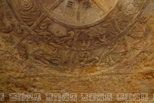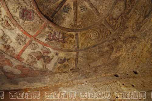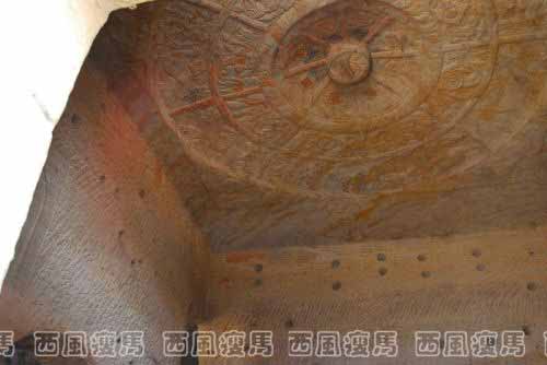 石窟里的佛像已经都没有了,留下了一个个十分大气的空石窟,有十几米宽的,有三四米宽的,有石柱窟,有上下、左右相连的大小不一的二十几个石窟。石窟顶部的藻井刻得十分精细,有的还保存的十分完整,有的虽然残破了,但是还是能看出当年石窟的气势。