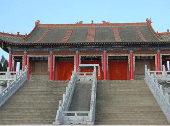 健步登上大门外台阶,石佛寺当门是千手观音头道殿。千手观音大幅塑像居中巍然于头道殿内莲花坐台之上,内有三十二印分塑東西两廂,传说是千手观音的三十二个化身;个个凌空雕塑,伟岸耸立,千奇百怪,相貌特异,彩饰华丽,栩栩如生。