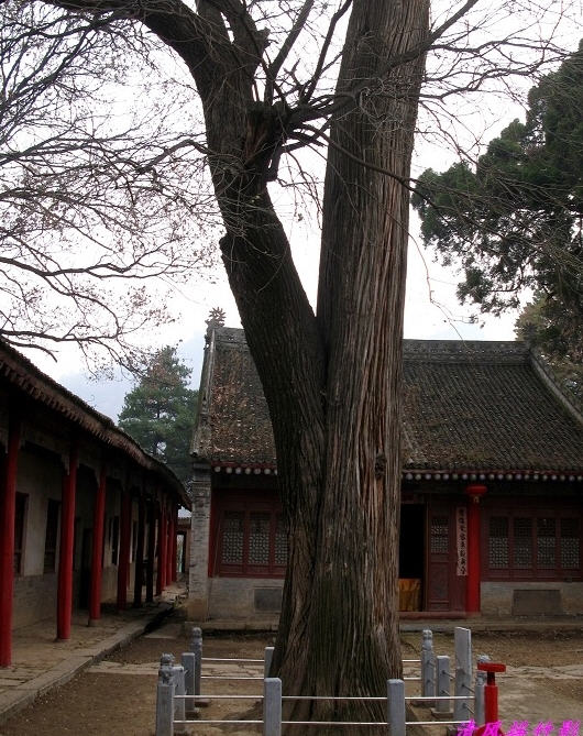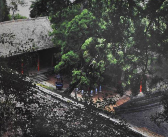 该寺院中还长有一棵奇特的千年古树——柏抱槐。柏树中间长有一棵槐树,树干三搂有余,柏高槐低,各显风姿,树龄约1500余年。此柏槐长在这慈悲为怀的佛门净地,可见大自然造物的神奇。