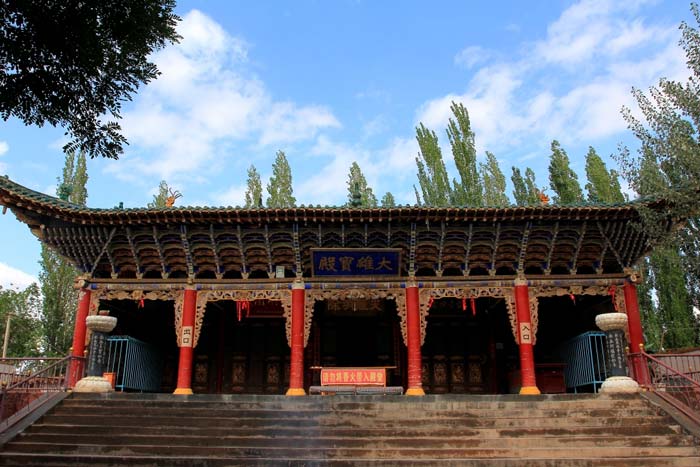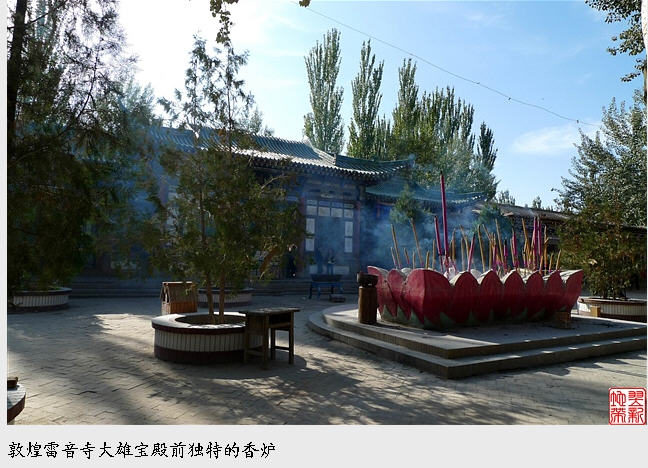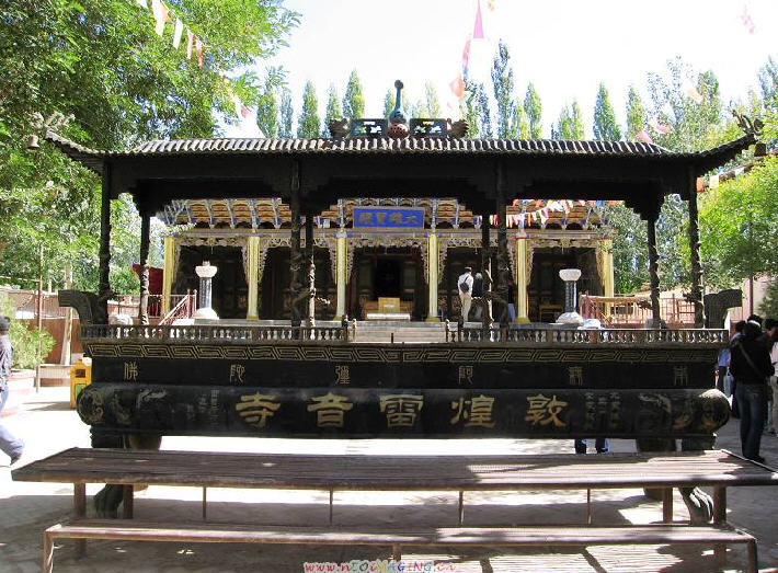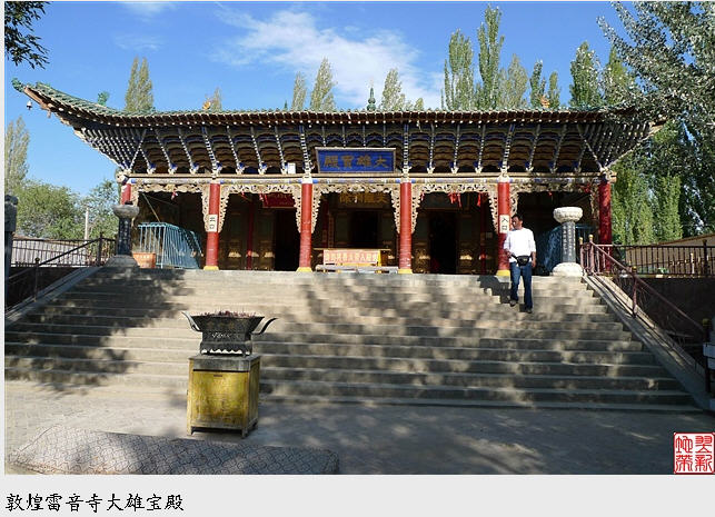 位于敦煌市南4公里处,属杨家桥乡,在敦煌市至鸣沙山公路的左侧。传说古时在月牙泉附近有雷音寺,后沙暴横行,寺院为鸣沙山所埋,1989年,由国内外佛教团体和敦煌市佛教徒捐赠,于今日位置重健了雷音寺,1991年6月落成开光,并对游人开放。