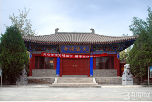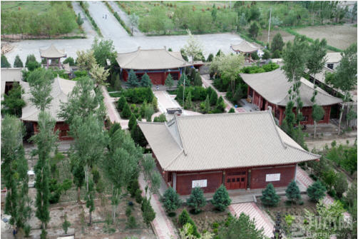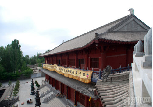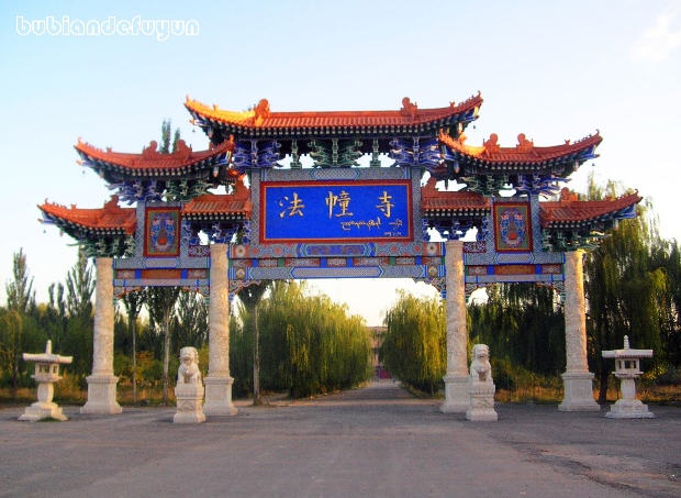 后因信众逐年增多,观光旅游者也纷至沓来,而原建寺院范围狭小,已不适应形势发展。1994年,由已故中国佛协常务理事、甘肃 省佛协副会长、法幢寺方丈融照法师及酒泉有关领导发起,筹建以佛寺为主体的宗教旅游风景区,既方便信教群众进行宗教活动,又可供游客旅游观光。扩建工程於 1995年奠基动工,建筑工程项目28项,以逐步分期施工完成。1999年,一期工程如围墙、山门、天王殿、大雄宝殿、钟鼓楼及斋堂、寮房等配套工程均告 完工,并於同年9月20日举行了隆重的寺院落成暨佛像开光典礼。寺院坐北向南,前临讨来河畔,后依北崖梧桐湾,依崖旁水而建,沟深壑奇,地势险峻,潺潺流 水,林木葱郁,曲径幽深,风景秀丽,景色宜人,气象十分清静。之后,时值开发西部、再造酒泉,创建文明都市、大力开发文化风景旅游事业之机,在有关领导的 关怀与协调下,寺院二期工程[如卧佛殿(藏经楼)、七层佛塔、二进院东西阁楼等]逐步投入修建,并於2002年3月20日、8月底分别举行了佛塔和卧佛殿 奠基暨动工仪式。建筑群体仿唐宋时期,古朴、豪放、粗犷的体量与建筑风格;殿内由我国著名雕塑家、“黄河母亲“的设计者何鄂女士指导完成的塑像均仿唐代佛 教发展鼎盛时期的艺术风格,庄严生动,鲜艳夺目。