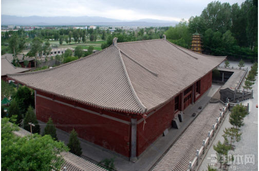 因为寺院的大门,一般 都是三门并立,中间一大门,两旁各一小门,所以称为三门殿.也有写作山门殿的。古来寺院有许多院落,其中房舍称堂或者寮,自宋崇宁二年(1103)以孔子 庙为大成殿,于是佛寺建筑院称堂寮之外,其主体部分也称某某殿。三门殿内,在门的两旁塑两大金刚像,此即手持金刚杵(印度古代最坚固的兵器)警卫佛的夜叉 神,又名‘执金刚’。传说佛常有五百执金刚随从侍卫,其主要者名‘密迹金刚’。世俗根据《封神演义》小说中的戏言,称此像为哼哈二将,佛教经典中是没有这 种名称的.两侧墙壁上绘有天龙八部护法。天龙八部亦称“龙神八 部”,简称“八部众”。据《舍利弗问经》等佛教经籍记载,天龙八部为:天众、龙众、夜叉、乾闼婆(亦称“香神”或“乐神”)、阿修罗、迦楼罗(亦称“金翅 鸟”)、紧那罗(亦称“人非人”、“歌神”)、摩睺罗迦(亦称“大蟒神”),其中以“天众”与“龙众”最受佛教徒崇信。这八部天神每部都有庞大的队伍,他 们常常成群结队,保护众生,维护佛教。