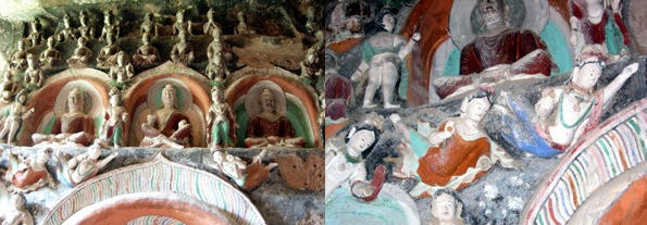 金塔寺石窟虽仅由东西两个面积不大的洞窟组成,但在我国佛教石窟艺术发展史上却占有重要地位,原因便在于其塑像均采用悬塑(高肉雕)手法,其分 布于中心方柱上的佛、菩萨、力士、弟子、飞天等塑像各具形态,栩栩如生,在石窟艺术中独具特色;尤其是大型悬雕彩塑飞天,在国内石窟中绝无仅有,具有极高 的历史、艺术及研究价值。