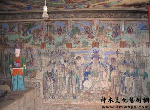 永兴寺(石窟)位于神木县乔岔滩乡龙尾峁村西南二公里处,该寺庙及石窟始建(凿)于明初,明代中叶及清、民国年间均有增修(凿),寺庙坐北向南,平面呈长方形、平顶,石窟凿于东西流向的小河旁的山崖上,共凿九窟,西三窟保存较好,面宽2.5-6.4米,高1.26-4.9米,进深2.64-8.3米,窟内彩塑三教圣人,十大明王及文殊,普贤像,左右壁彩绘九曜星君、地藏、十王、弥勒佛、天龙八部及千佛5000余尊,藻井浮雕龙、凤、花草等图案,还遗有石狮1对,钟鼓楼等建筑,明成化年,清同治十一年(1872年),1914年款庙碑名一通。