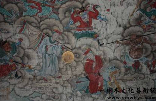 由上可知该窟凿于元代,明代天启年间补凿藻井,窟内藻井剔地高浮雕,所刻人物花鸟禽兽活灵活现,栩栩如生,具有很高的欣赏和保存价值,今已裂变为三块,一块已下垂约3厘米左右,急需采取措施加以保护。