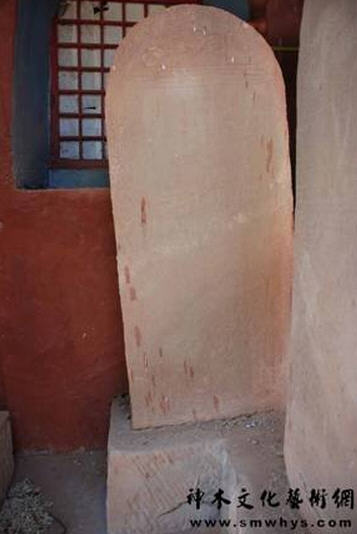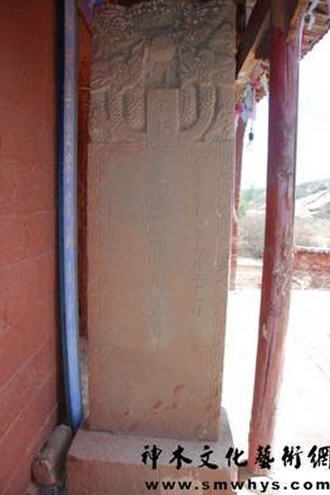 窟北壁相连并凿大小不等的碑文三方(见附表1、2、3)由东向西依次为:功德主众弟子姓名碑;天启四年记载该寺始建年代,宗教活动区域及该寺四至范围所藏经卷碑;天启七年僧人微智补凿藻井碑,窟南壁东首原凿有元代皇庆二年题诗碑(见附表4)1995年10月23日神木县文化局副局长刘玉亮,县党校党支部书记王云祖及杨春茂,白生武四人前往调查时,发现此碑虽多剥蚀,字迹尚可辨认,已抄录该碑迁依稀见有凿窟时“食盐十一三百”字样,情未带像机拍照,今碑文剥落全无,仅余边饰,令人遗憾。