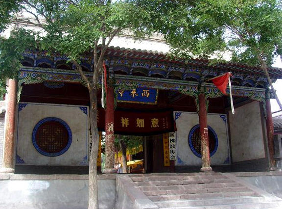 西来寺位于甘肃省张掖市西南隅西来寺巷。拒《甘州府志》记载,该寺始建于唐,明朝重建,名为“慈云精舍”。康熙三十年(1691年),郎法·阿 扎木苏住寺修行,后抵京谒见康熙皇帝,赐名“普觉静修国师”,颁赐敕书、银印及红字藏文经108并令其统管甘州南番汉僧。康熙五十一年(1712年)将其 精舍改为寺庙,建楼五楹,作藏经之用。康熙五十九年(1702年)署理抚还大将军平郡王纳尔素赐金赐额,令剌嘛刘劳藏重修,命名为“西来寺”。当年九月兴 工,至雍正十年(1732年)三月落成。该寺占地57亩,原有规模宏阔,建筑结构精巧,布局恰当,主次分明。藏经楼为单檐硬山顶,两边券棚顶,面阔五间, 进深五架梁椽,配殿面阔三间11.4米,进深6.2米。楼上供有弥勒佛像并贮藏经书,楼下有普觉静修国师真容。南配殿有护国仁王佛像一堂,北配殿有护国天 尊护法一堂。藏经楼东北侧建一宏大寺院,大殿有释迦牟尼佛像,山门过殿有韦驮、天王像,神熊各异,雍容壮观。金刚殿单檐歇山顶,面阔三间,殿内顶部中心有 藻井,围以绘有各种图案的天花板。寺内原有木刻像五尊,塑像32尊,塑像中有32臂佛像一尊,现均已不存。壁画墙二十一面,内有元代三面、明代十面、清代 八面,由于年代久远,已有损失。陨石一块,已佚。