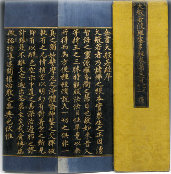 大佛殿后面是藏经殿,木质结构建造。内藏明正统十年(1445年)英宗朱祁镇敕书颁赐给 大佛寺的一部佛经,是明正统五年官版印制的,经籍名目每繁多,集佛教经典之大成,共计350种,685函3584卷,其中有明正统初年镇守了陕甘御马监兼 尚宝监鲁安公贵集士用泥金书写的《大般若波罗蜜多经》、《花严经》、《胜王经》、《报恩经》、《大唐西域记》等,殊为珍贵,是全省现存最完整的经藏。