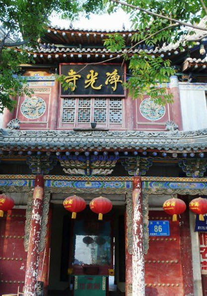 陕西眉县净光寺传为北魏时达摩禅祖主持兴建, 古称静觉寺、普救寺、普陀寺、普渡寺。原位于位于县城南,今眉县人民政府院内。由于历经沦桑,原貌已被湮没。净光寺旧址仍保留一座佛殿(为明代建筑),已残破不堪.一座唐代七层砖塔,高为22.05米,约建于唐元和十一年 (816)至咸通九年(868年)。塔旁有一造型别致的八楞形汉白玉经幢一尊,即为《佛顶尊胜陀罗尼经》石幢,堪称佛世珍品.此幢为唐宪宗李纯元和十一年(816年)镌刻建造。距今已有1187年历史,是佛教悠久文明史上极为珍贵的遗产,对研究中国佛教有极其重要价值。