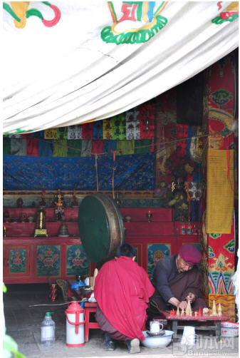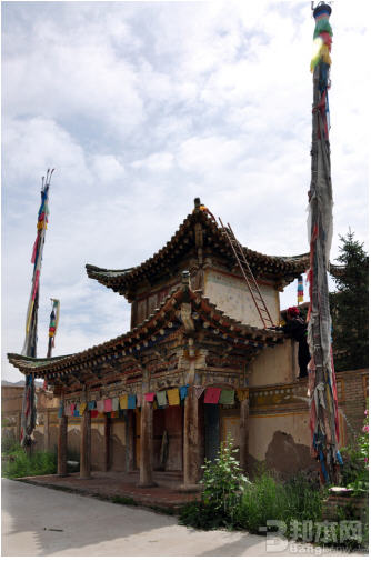 公元1867年-1877年间,在夏噶尔·措周让着的转世活佛加英让着的指导下,该寺经堂扩建为五间。之后康·桑杰多杰和当加三世登邓多杰等在这经堂内举行大规模诵经和佛事活动,成为该地区传承旧译咒的宁玛派密乘寺院。解放后,随着社会的发展和信教人数的增多,经堂规模显得小,无法容纳信教群众开展正常的佛事活动,所以1955年在康·豆香、古朗那措让着、多哇却吉项秀、右朗嘉赛、康·格钦、当加、坚官等活佛的指教下,该寺宗教人员和信教群众把经堂扩建成七间二层。当时有80余僧人。