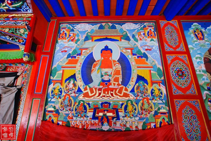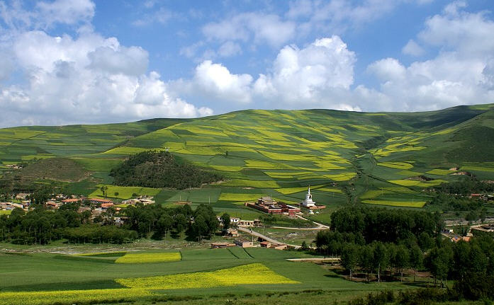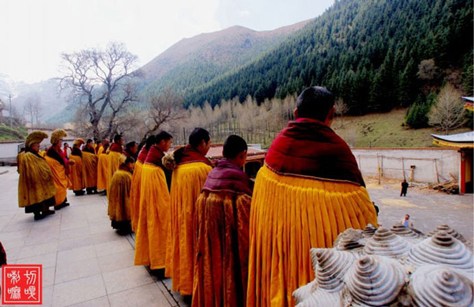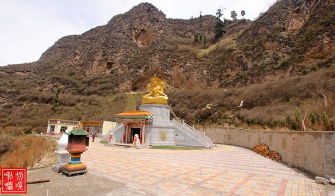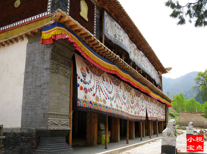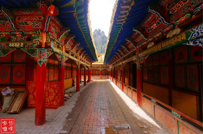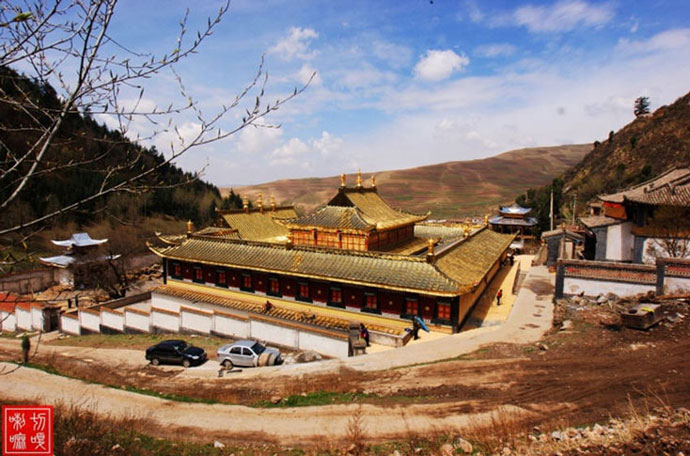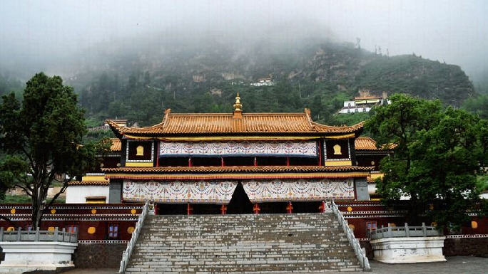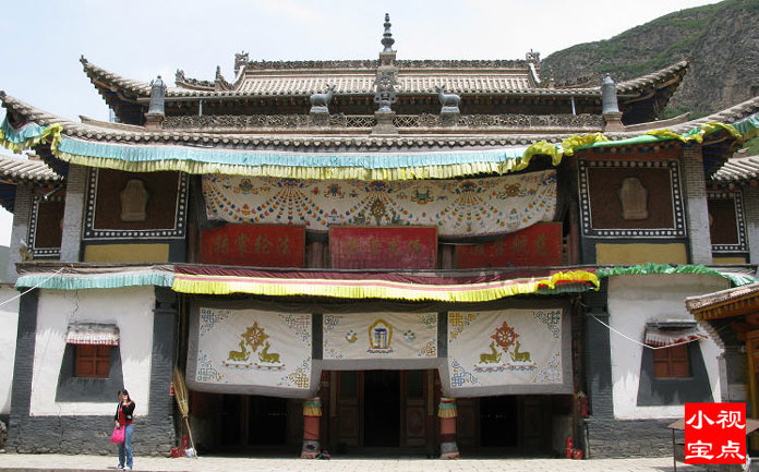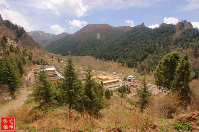 距西宁50公里,藏语称“郭隆弥勒洲”,简称“郭隆寺”,在今互助县五十乡东北6公里的寺滩,寺院建在一处东西走向的峡谷中。一些修法洞镶嵌在陡峭的山崖上,造型奇特,蔚为壮观。远远望去,苍翠的松柏参天挺拔,郁郁葱葱,寺院点缀在山间,甚是美观。山岭、古树、殿堂交相辉映,更增添了寺院的庄严、肃穆和恬静的气氛。