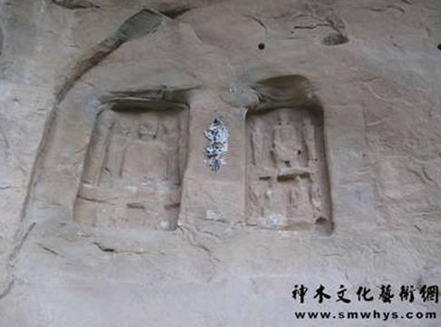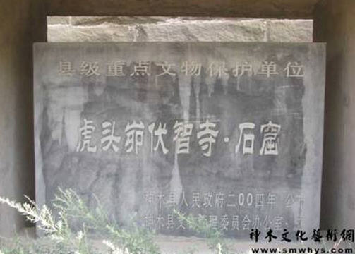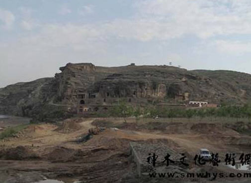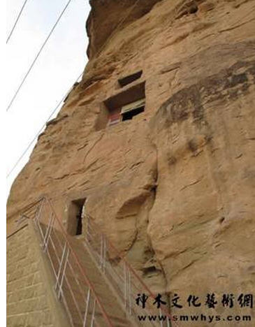 “伏智寺”·石窟,位于神木县乔岔滩乡凉水井村东秃尾河东岸崖壁上,西南于佳县白家土寨隔河相望。