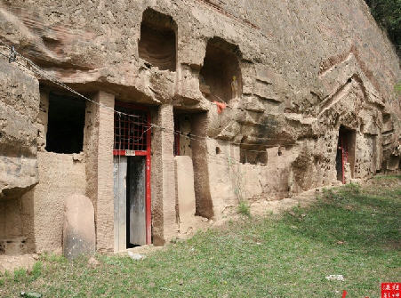 始建于北魏,宋、明代扩修、重建,位于雨岔老君寺后村1公里处的石壁上,与地面平行,占地6亩,坐北向南,共有 石窟12孔,1、2号窟各深1.23米,宽80公分,雕像6尊,3号窟深1.24米,宽75公分,高80公分,雕一文官坐像,4号窟深5.7米,宽 4.2mi ,高3米,顶绘八卦图案,雕三世佛(残缺),5号窟深3.9米,宽3.9米,高3米,雕佛像11尊,顶呈拱型,绘莲花瓣花纹,6号窟深5.7米,宽4.2 米,高3.2米,顶雕龙凤八卦图。泥塑造像破坏,尚留痕迹,7--12号窟风化,无考。