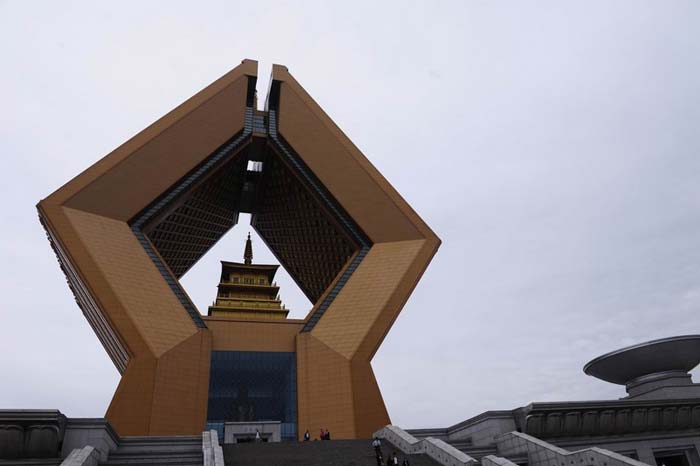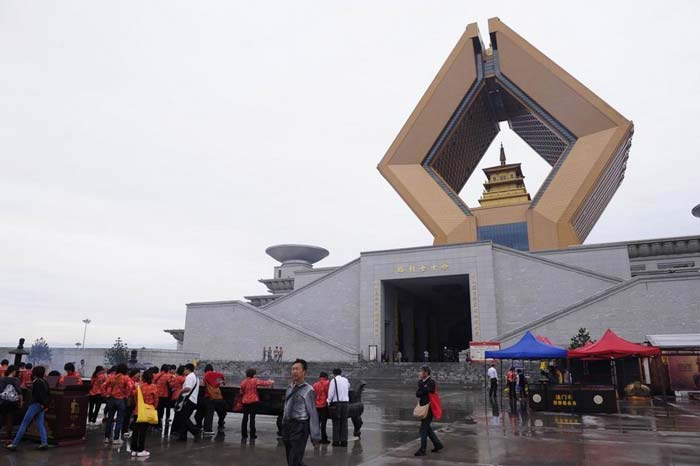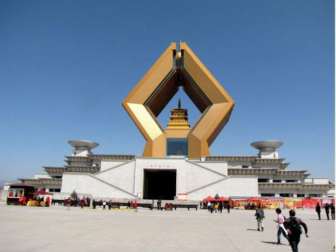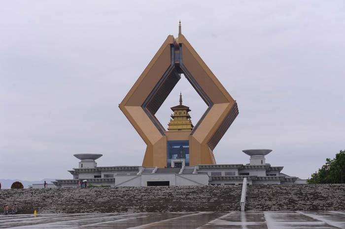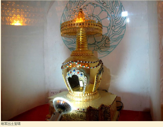 1981年8月24日,宝塔半边倒塌。1986年政府决定重建,87年2月底重修宝塔。适逢四月初八佛诞日,“从地涌出多宝龛,照古腾今无与并”,在沉寂了1113年之后,2499多件大唐国宝重器,簇拥着佛祖真身指骨舍利重回人间!地宫内出土的稀世珍宝,不论在中国社会政治史、文化史、科技史、中外交流史、美术史等方面的研究上,都具有极其重要的价值。1988年,法门寺正式开放并举办了国际性的佛指舍利瞻礼法会。海内外诸山长老及各界代表共三百余人参加法会。十多年来,法门寺在前任方丈澄观、净一法师的住持下,相继建成大雄宝殿、玉佛殿、禅堂、祖堂、斋堂、寮房、佛学院等仿唐建筑。