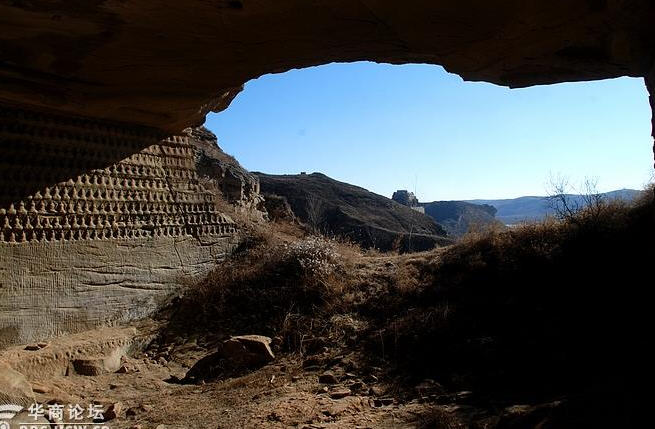 出了高家堡的东城门,跨过神佳公路,有一座山,当地人叫这座山为东山,当然陕北这地方的山也就是有石头的坡而已,不要指望有多么的高大,多么的险峻,然而山不在高有仙则灵嘛,也就是在这座东山顶上,坐落着鲜为人知的千佛洞和万佛洞。