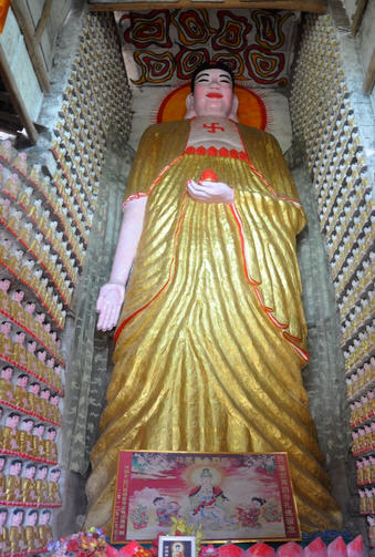 默默地伫立在高达12米的释加牟尼佛像之下,默默地望着百余米人工雕凿而成的近万尊大小摩崖佛像,满眼的金碧辉煌,满目的灿烂眩目,我情不自禁发自内心地赞叹道:蓬安青衣万佛寺,一山藏万佛,人工胜天工!这里直追乐山大佛,这里堪比龙门石窟!