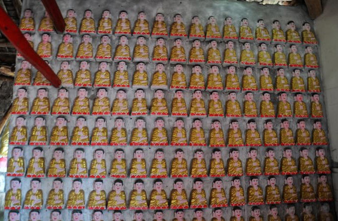 “悬崖顽石上,大小佛一万?”听到这里,我顿感一种强烈的好奇。老人于是安排一位名叫妙善的女居士带我前去参观。跟着妙善居士向山崖右边一路走去,我才蓦然发觉自己走进了另一个豁然开朗的洞天,到了这里方知青衣万佛寺拥有万尊佛像并非虚传,只见整个摩崖石雕像长达一百多米,宛如一条长龙腾飞,摩崖之上全部密密麻麻整齐有序地雕刻上了大大小小的佛像,佛祖、观世音菩萨、大势至菩萨、弥勒佛、地藏菩萨、金刚、天王等等,大小佛像形态各异,栩栩如生,可谓惟妙惟肖应有尽有。最大的佛像高达12米,最小的佛像如拳头或者巴掌般大小,所有的佛像均彩塑金身,并且在摩崖佛像之外还修建了遮风蔽雨的房子,以防止佛像因为年成久远而被风化,雕刻佛像之人以及供奉佛像之信众用心之良苦与虔诚,由此可见一斑。走出摩崖之下的房屋,在长达百余米的摩崖之下的地坝中还修建了水阁景晾亭,地上用青石摆放了一个长宽各10米的大大的“佛”字,修建了佛塔。妙善居士告诉我,每逢二月十九、六月十九、九月十九,寺里香火极其鼎盛,香客源源不绝,每天信众多达近万人,山上山下,游人如织,络绎不绝,盛况空前。