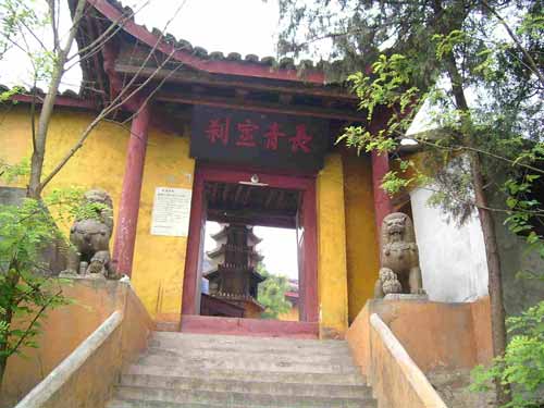 长青寺位于阆中嘉陵江南岸的长青山(今阆中七里坝),山麓乃古时之彭泽大池,为伏羲和女娲诞生地,故伏羲为巴人始祖,后迁巴国于阆中。汉唐时期,此地万顷苍池,洋洋数里,皆为泽国,称为彭道将池,池畔建有汉高祖庙。唐朝佛教盛行,无穷法师在长青山修建寺庙,曲水映带,以山命名曰长青寺。寺内塑供释迦牟尼佛像外,还建有伏羲殿,塑供伏羲之像。阆中及巴人既敬佛祖、尤敬始祖四时香火不绝。到了宋朝,这里水枯池毁,已成农田,仍称南池,七里坝之名盖沿于此。其时,高祖庙犹存,百姓皆至是祠,祈求五谷丰登。孝宗乾道八年(1172年)春,陆游来阆中游南池,曾咏《南池》一诗云:“二月莺花满阆中,城南搔首立衰翁。数茎白发愁无那,万顷苍池事已空。陂复岂惟民食足,渠成终助霸图雄。眼前碌碌谁知此?漫走丛祠乞岁丰。”历经数朝,清朝康熙三十三年(1694年)朝隆三十五年(1770年),同治六年(1867年),光绪二十年(1894年)屡毁屡建,清末民初,仅存破椽残垣。