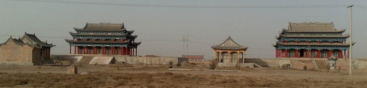 至若两院山门,玉简瑶参。钟鼓二楼,弧标特树,钟声悠扬古塬,鼓声震响开发,与时俱进、气壮山河。远览古寺、富丽堂皇、钟灵毓秀、灿若明星。
