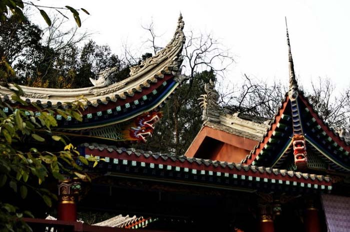 转过大雄宝殿,往西,一棵奇特的“连根树”吸引着游人的视线。此树根部紧紧相连,相距2米形成三株独立的参天大树。民间传说是观音三姐妹修行得道后所植象征着三姐妹皈依佛门,永结同心,息息相通。还有一株神奇的“三友树”,围绕着同一个树身,却天然长出三种不同的枝叶,分别是黄桷树、柏树和樟树。而在上庙西山门下,一株苍翠的古柏与此有着异曲同工之处,被人们称为 “观音柏”。观音柏胸径1。32米,高30余米,冠幅11米,离地2米外分成了三枝,劲直不屈,古朴入画。不知是一种巧合,还是一种神力,在人们心中,这几棵奇树早已成为观音三姐妹形神不离、齐心向佛的形象化身。