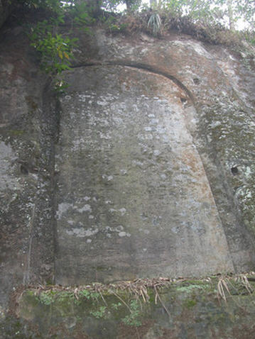 一个周末,笔者来到秦溪镇境内灵泉寺。据当地村民介绍,灵泉寺已于解放初期被毁,但现仍完好保存着明清时期的一些碑刻。在一村民房后的石岩上,10块大碑刻相依而立,面积都在2平方米以上,多以歌赞灵泉为内容,其中明代7块,清代3块上,全是在岩石上开凿。明代石刻为过往官员所留,如监察御史卢雍,巡按御史姚祥,四川行都司断事刘逊,四川按察司佥事杨瞻,顺庆(原南充)府事朱甫等。清代石刻每块宽约2.5米,高约5米,每字仅如乒乓球大小,刻迹较浅,全为灵泉寺僧人于清天聪年间所刻,其中最前一首为一十六律《灵泉怀古》,因石壁多生青苔,内容难辨。一十六律在古文中极罕,此处的《灵泉怀古》或许能为研究一十六律提供一个极为宝贵的素材。