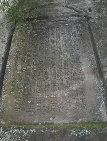 在众多的碑刻中,我们不得不提及“忠义之邦赞”碑,它是原顺庆府地乃至整个川东北地区曾为“忠义之邦”的见证。该碑系碑刻群中的一块,高约2.5米,宽约1.5米,字体较大,为隶书,刻迹较深,其全文为: