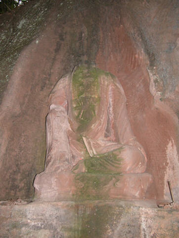 石刻群还有摩崖造像两龛,一龛已空,一龛为净瓶观音,净瓶观音端坐莲台,像高约1.5米,刻艺极工,从其开明大方的服饰风格来看,可能为唐代所造。