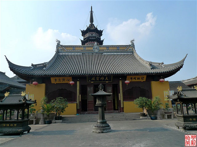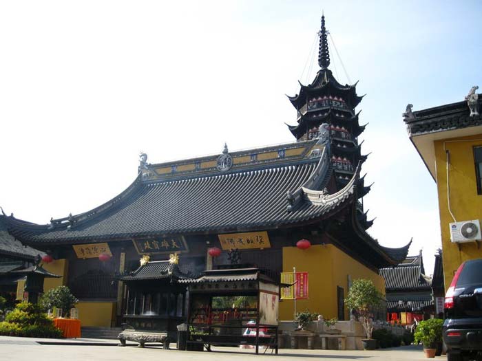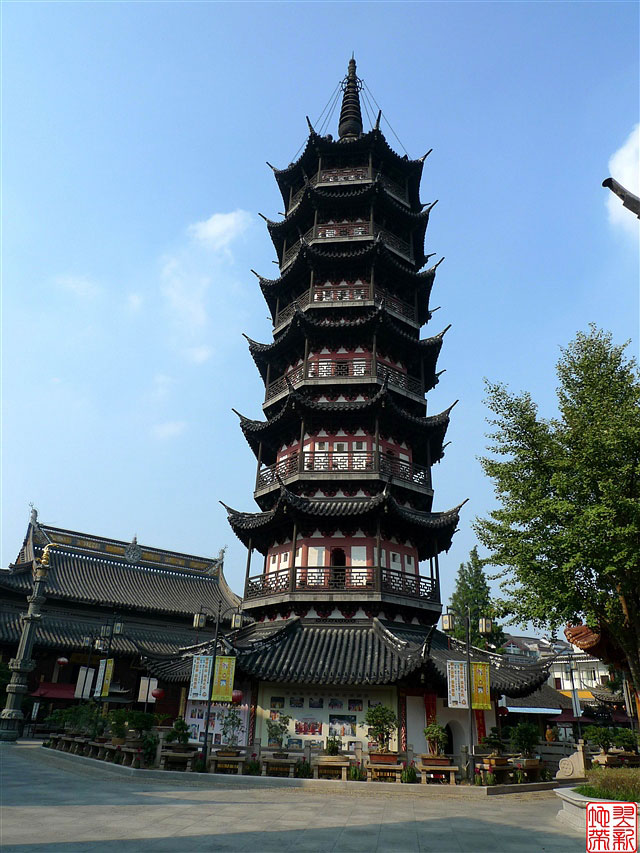 上海市松江西林禅寺,始建于南宋咸淳年间,迄今已有七百余年历史。初名云间接待院,院内有崇恩宝塔,气势恢宏,元初年毁于兵焚。明洪武二十年(公元1387)重建,改名为西林禅寺,并修建宝塔,俗称西林塔。同时,也是为了纪念南宋云间接待院创始人高僧圆应禅师,故易称圆应塔。塔共七层,高46、5米,塔势峥嵘荘严,三吴诸塔无出其右者,名播远近。正统年间,明英宗亲赐匾额,敕封“大明西林禅寺”,其时僧众达六百余人,暮鼓晨钟,法音梵呗,盛极一时,延至清代。法门有继,代代相传,累世扩建,称为江南名刹。