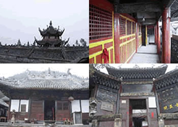 大雄宝殿后面为玉皇楼,此楼为明万历二十六年所建,全楼占地200平方米,原有壁画68幅,内容多取材于《封神榜》,文革中部分被毁,现存有37幅;楼上所有抬梁枋均着彩色花纹图案,十分精美。