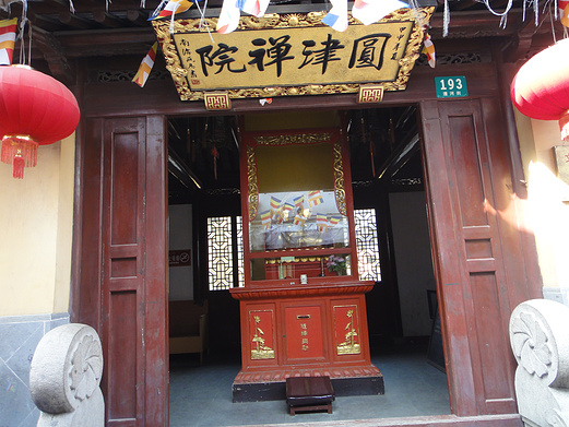 圆津禅院位于青浦区朱家角镇泰安桥西堍漕河街193号。始建于元至正年间(1341-1368),初供辰州圣母像,俗称娘娘庙,明万历年间重建圆津禅院,清顺治、康熙年间,圆津禅院逐渐扩建。从第三代住持语石起,几任住持都能诗善画,常有文人士大夫流连往来,吟诵聚会。院中有赵孟頫手书的“涌月”石刻的“涌月井”和清华阁等古迹。