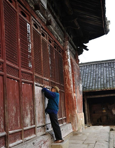 “20多年前,有两位从北京慕名而来的摄影家,花了两天时间拍摄这些壁画。他们边拍摄边赞叹。”陈德国老人说,曾经光彩夺目的壁画后来遭到了严重破坏,一些人为了蝇头小利,将佛像身上的镀金洗走了。一些人在大殿内养蚕,在墙壁上打洞安放养蚕工具,破坏了墙体,也损坏了壁画。