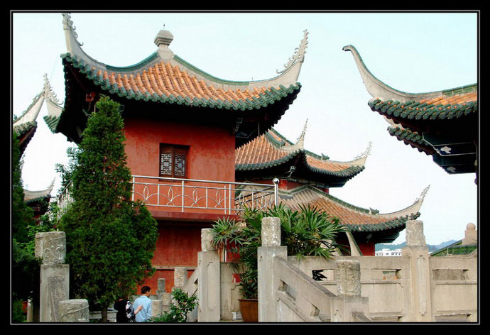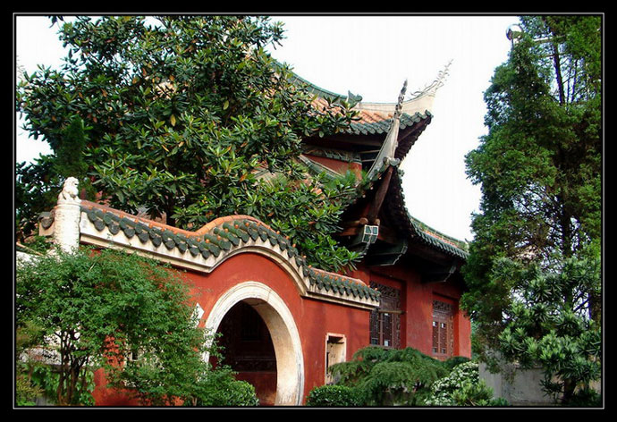 三圣殿:遵义湘山寺三圣殿,是善化寺的中殿,殿内中央三尊像为“华严三圣”。山门是寺内正门,内有天王塑像四尊,这四尊佛教护法神,给人以凛然不可侵犯的印象。善化寺内,还有一座五龙壁,五龙色彩艳丽,给寺内增添了活泼欢快的气氛。