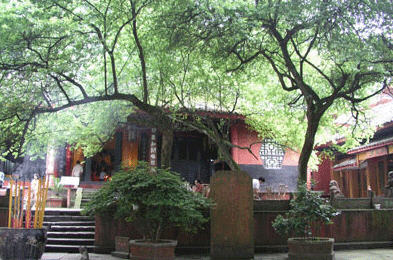 今寺已修茸一新,正殿新塑有吴理真座一尊,寺前有千年银杏十三株,参天盖日而立。