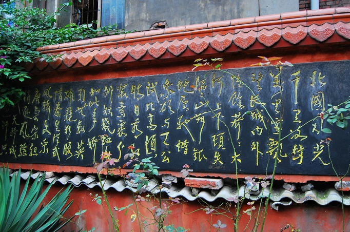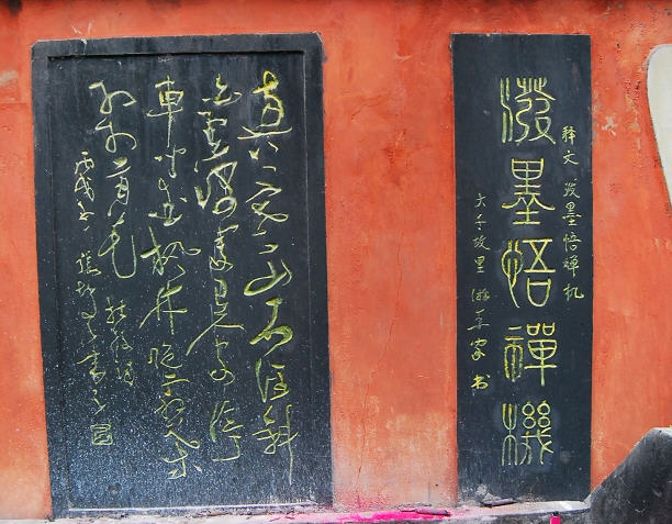 内江凌家镇南华寺是座新寺,建寺不到十年,几乎少有人知道有这么一个寺。寺院在闹市之中挤出一块地方,占地面积很小,具体数字不详,只见一个窄窄的院坝和一重寺庙,没有多余的空间。走进院子,迎面墙壁上,左书“佛”字,右上写“南无阿弥陀佛”,下写“福”字,中有纪年写“丙戌年冬月吉日”,可见建造不过几年光景,这“佛”道出佛家宗旨,这“福”迎合了世人心态,不论信佛与不信都能与之结缘,巧妙地达到佛家广结善缘的目的。我不解佛,却对其门上一对佛联有些兴趣,大门两旁的对联是:“入南华佛寺门忙里偷闲修身养性去,离尘海名利闹中取静悟道参禅来。”