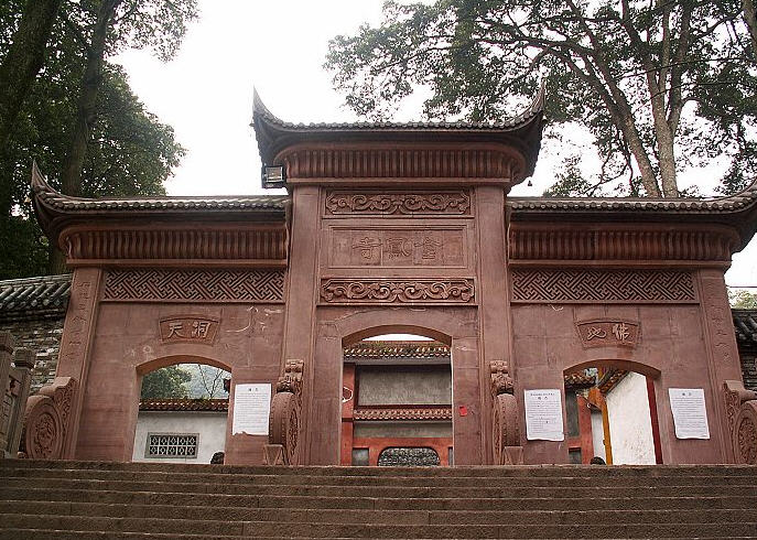 金凤寺,西距雅安市区三公里,前临清一江,后枕蒙山,山形呈“青龙绕凤”之势,环境幽静雅致,是雅安八属之古迹,游览之胜地。始建于唐初,兴盛于宋,明永乐元年僧宗寿重建,迄今6百多年历史,初名“石龙”,因山下有莲花池而更名为“莲花寺”,又因山之东状如飞翔的凤凰,且寺庙恰处飞凤头下,遂更名“金凤"。弘治年间又增添亭台楼阁、连池水榭。清同治年间,修“揽辉”、“望月”二亭。抗战期间,修建“牌坊”,于公元一九八七年,修建“罗汉堂”。如今,金凤寺宝刹更日益辉煌。