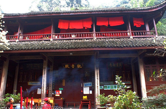 寺院掩映在葱茏苍翠之中,珍楠茂密,古树参天,寺庙占地近1万平方米,天王、弥勒、大雄、观音四殿气势宏伟,金碧辉煌,是川藏线上著名的寺庙。