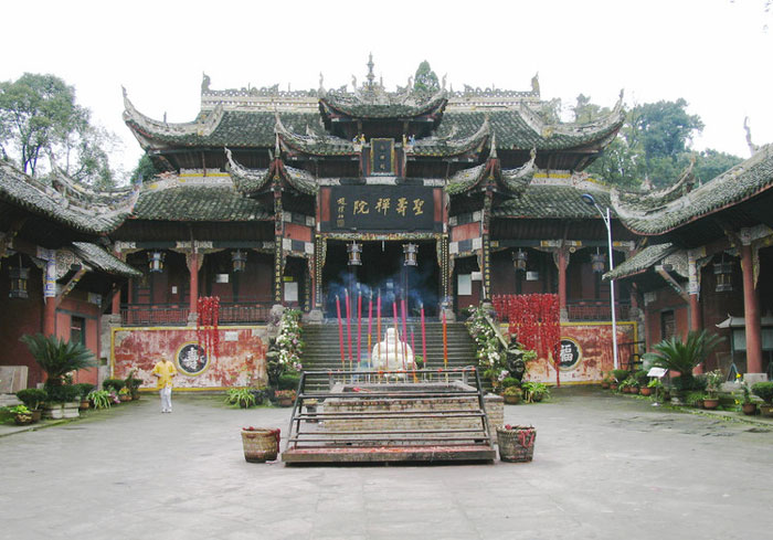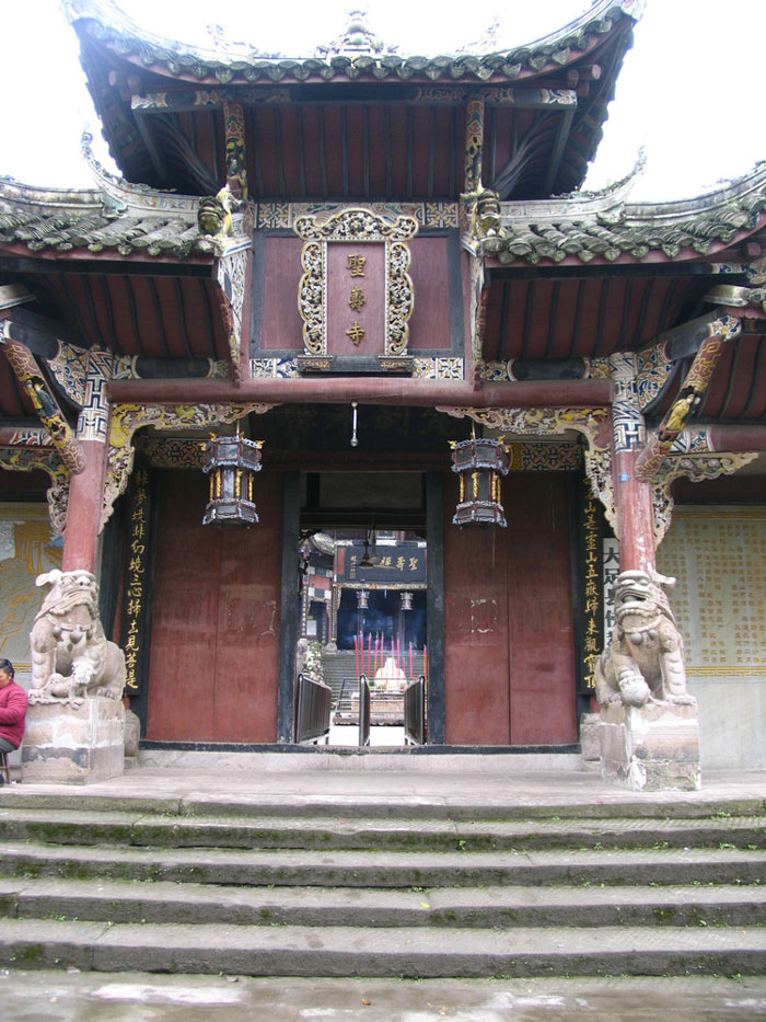 圣寿寺主要建筑有山门、天王殿、帝释殿、大雄宝殿、三世佛殿、观音洞、燃灯殿、达维摩殿(又称宝顶)等。